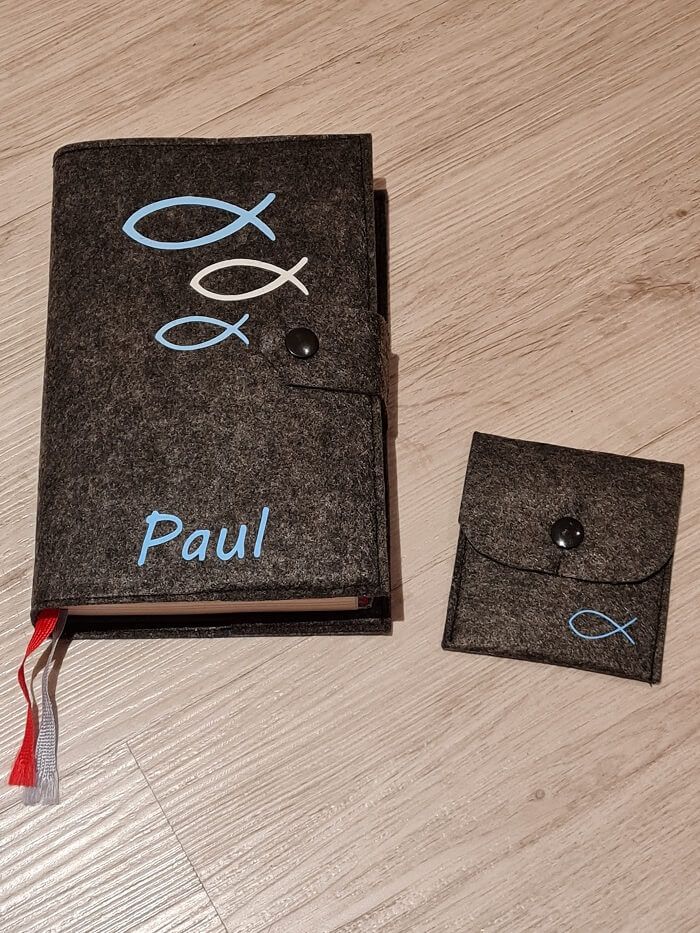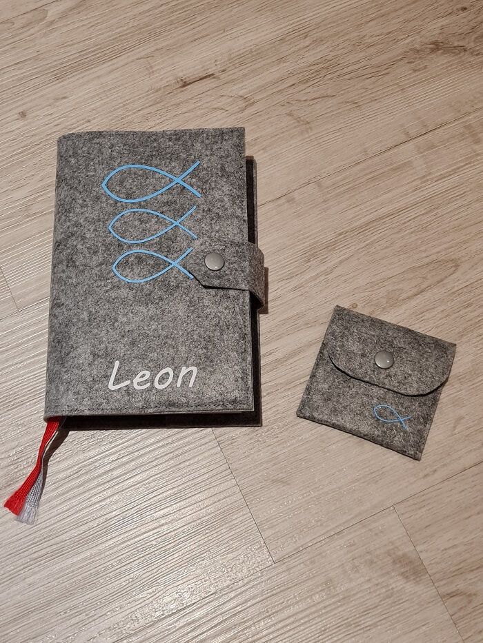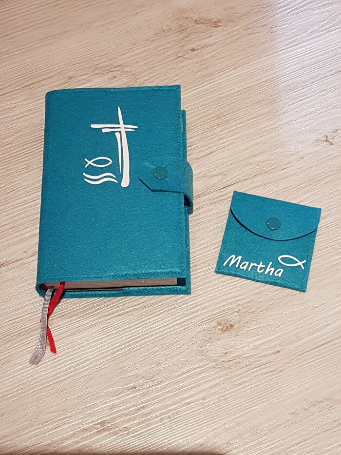 Individuell gestaltete Gesangbuchhüllen sind eine wunderbare Geschenkidee zur Kommunion. Ich verziere die Hüllen nach deinen Wünschen mit Motiv und/oder Name. Das passende Rosenkranztäschchen gibt es auch dazu.